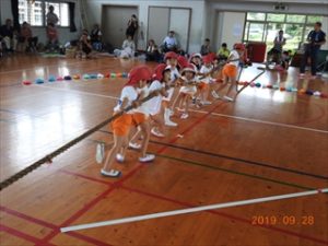 あいにくの雨予報ということで、体育館での開催となりましたが、子ども達は練習の時以上に一生懸命に競技やダンスなどに取り組む姿に成長を感じた運動会となりました。保護者の皆様もご協力いただきありがとうございました。