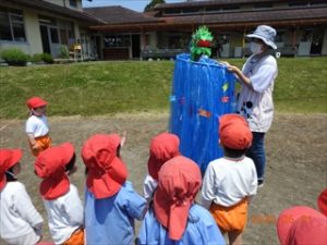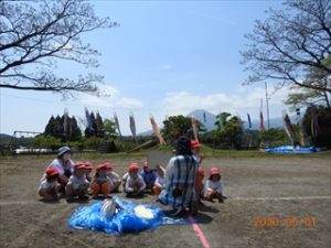 屋根よ~り~たぁ~か~い~♫こいのぼ~り~♪と久しぶりに子ども達が登園しにぎやかな声が響き渡る園内、子ども達は、みんな元気そうで安心しました。鯉のぼり集会では、鯉のぼりの由来のお話や、自分たちで作った鯉のぼりを泳がせたりお歌を歌ったり、かけっこをして遊んだりと楽しく過ごせました。一日も早く、今まで通りの日常が戻ることを祈っています。